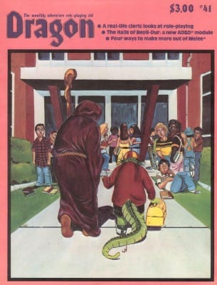 The cover is by James Holloway (his debut on Dragon) and ties into two things I found in the issue. The first is an article from a priest concerning D&D, which I can only imagine was selected due to the backlash from the religious right at the time against D&D.