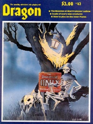 Either way, the cover by Steve Oliff is fantastic. I hate the frame look of this era of the magazine, but the painting is pretty great. I love the strange disdain that oozes out of the eyes of that weirdo skeleton. It is both creepy and funny, which is right in the horror wheelhouse.